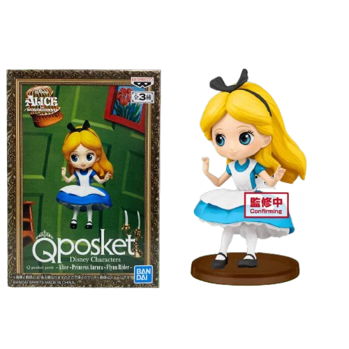 Figura Original Q Posket, de la Coleccion Disney Characters mostrando a Alice, de Alice in Wonderland, en tamaño pequeño, tal como se la puede apreciar en la clásica película animada. Mide 7 cm de alto e incluye base para su exposición. Imperdible!