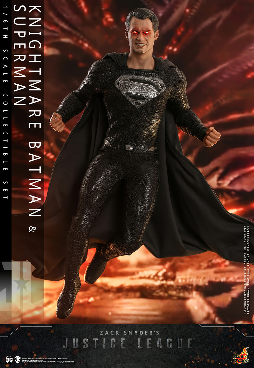 La excepcional figura coleccionable de Superman está meticulosamente elaborada en base a la semejanza de la película y presenta una escultura de cabeza iluminada por LED que acentúa la capacidad de visión de calor de Superman, una escultura de cabeza intercambiable, un cuerpo musculoso con alta poseabilidad, un traje negro recientemente confeccionado con el logo de Superman en gris plateado metálico, además de un soporte de figura temático.