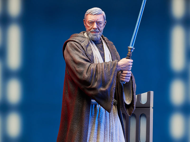 ¡Recrea la magia de Star Wars: A New Hope con esta nueva estatua de Obi-wan Kenobi en su aspecto del Episodio IV! Capturada durante su batalla con Darth Vader a bordo de la Estrella de la Muerte, con su sable de luz energizado, esta estatua de aproximadamente 12 “presenta aplicaciones detalladas de escultura y pintura y está limitada a solo 2000 piezas. Viene empaquetada en una caja a todo color con un certificado numerado de autenticidad.